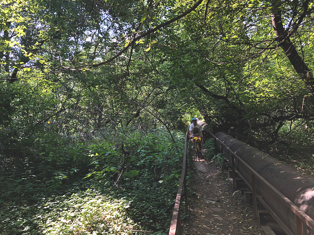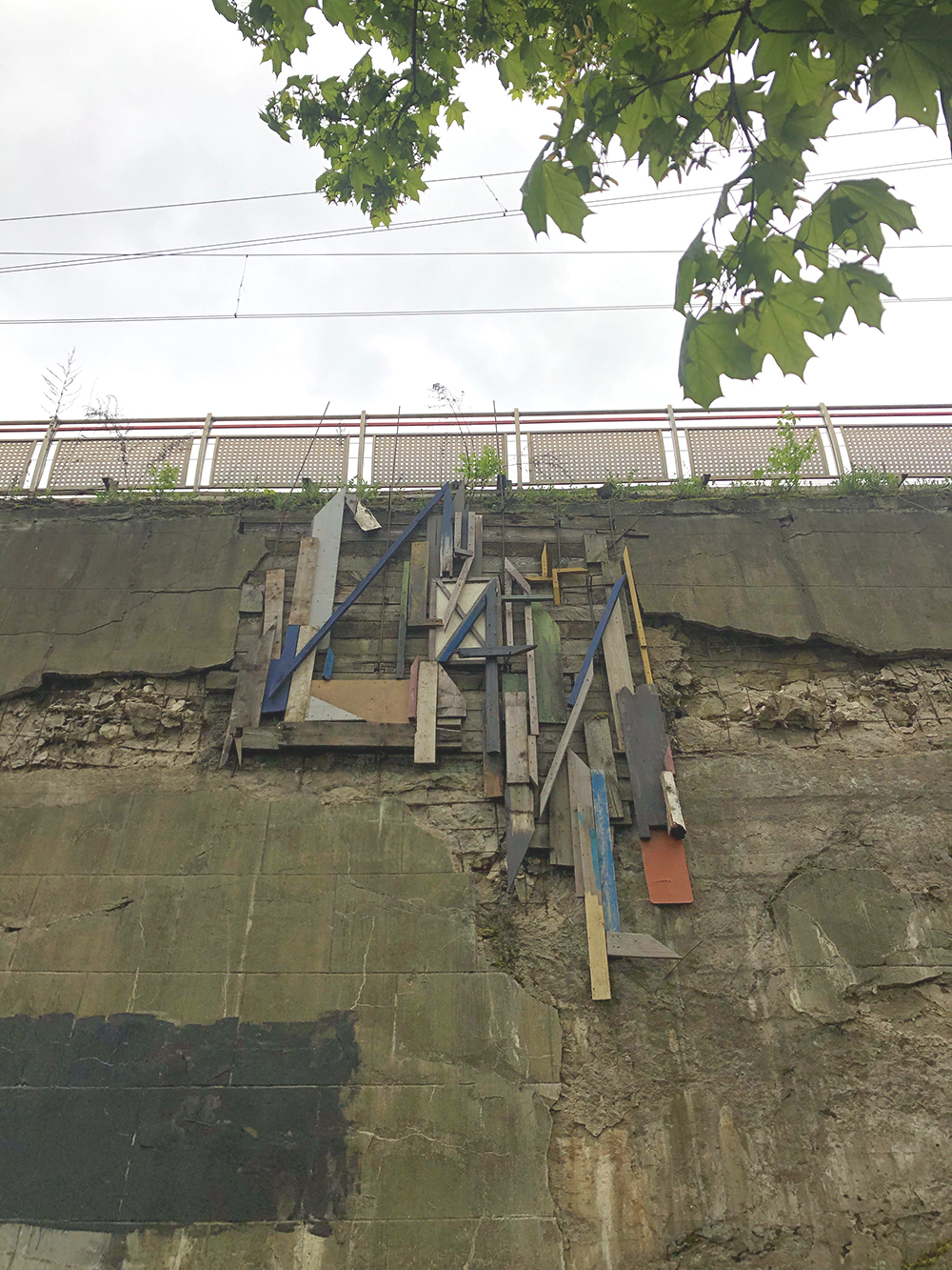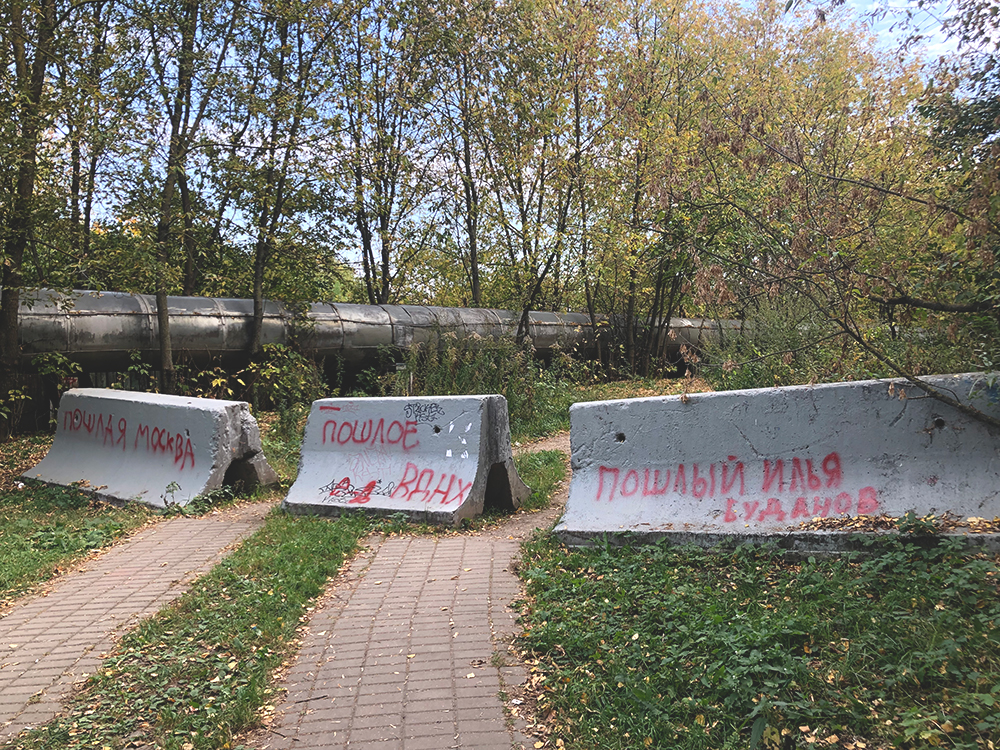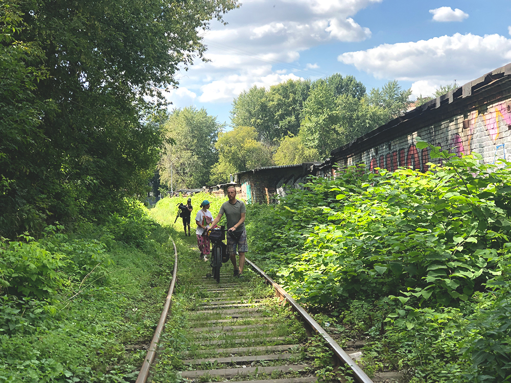 Произведение отличается от других маршрутов выбором элементов, из которых оно состоит: тропки, дыры в заборах, заезд за шлагбаумы, железнодорожные пути — это нетипичная и зачастую неблагоустроенная для посещения среда.